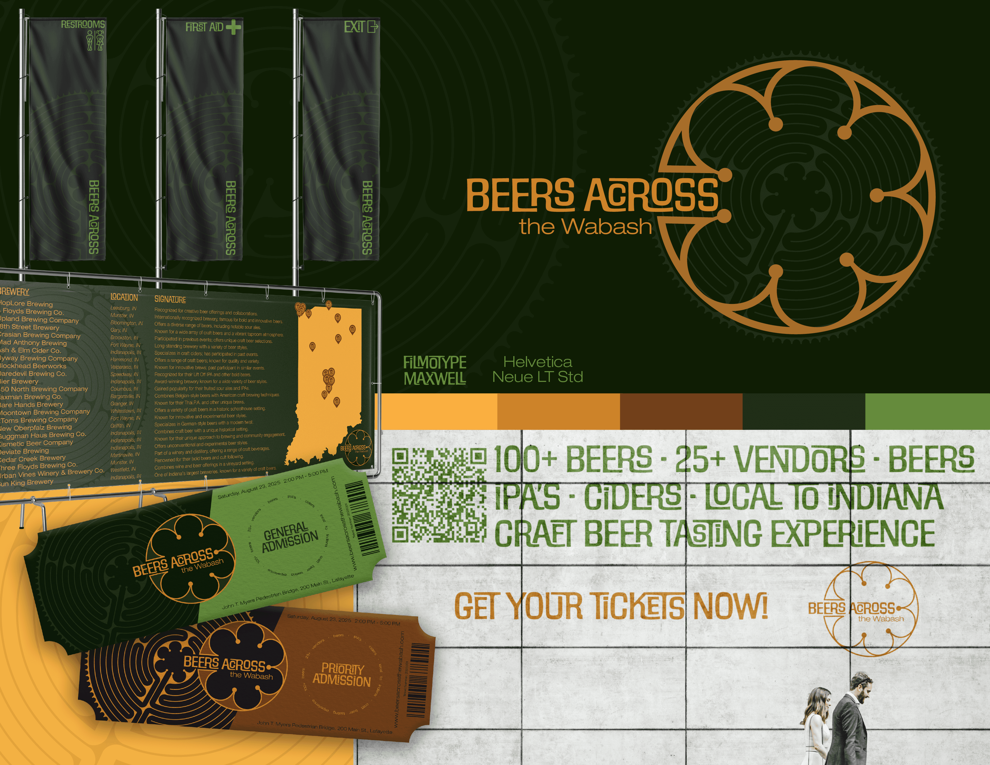 Beers Across the Wabash is an annual craft beer festival held on the John T. Myers Pedestrian Bridge in Lafayette, Indiana. The project dives into creating a visual identity for a public space by the development of logos, brand assets, signage, and merchandise.